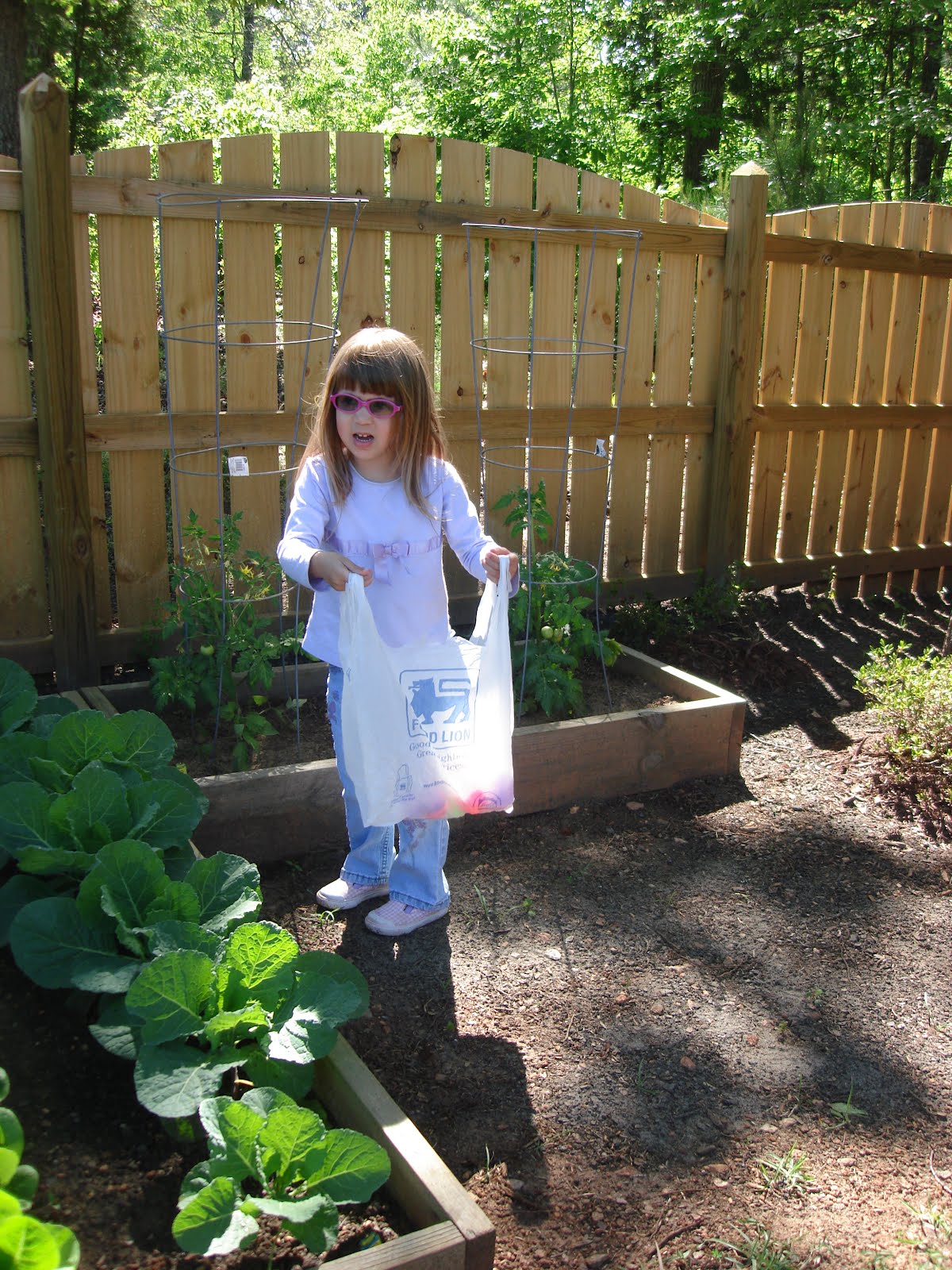 About a month ago, Todd got our vegetable garden started for this year. He normally does one big box on the side of the yard but decided to change the setup a little bit. He put the tomato plants in their own little boxes and then had 2 decent sized boxes for the rest of the vegetables.